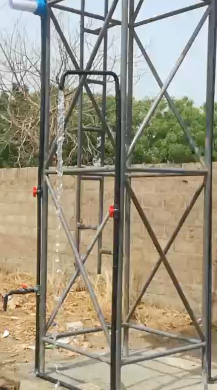 Nous avons de l'eau en abondance pour les différents points d'activités : le presbytère, l'église dont les travaux de construction en cours nécessitent beaucoup d'eau, le coin élevage et le jardinage.